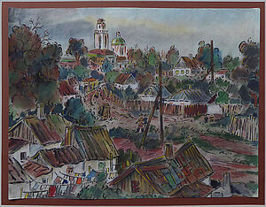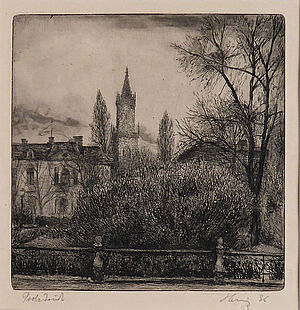 Radierung: ohne Titel (Kleinstadt-Ansicht)