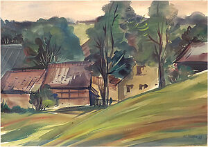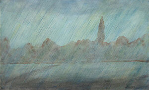 Aquarell und Federzeichnung: ohne Titel (Landschaft im Regen)