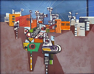 Tempera: ohne Titel (Urbane Berglandschaft)