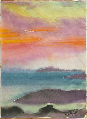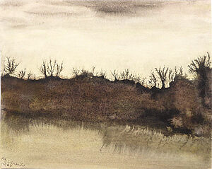 Aquarell: ohne Titel (Abendstimmung am Gewässer)