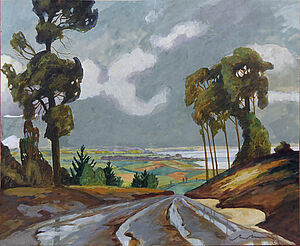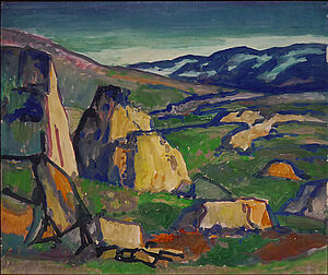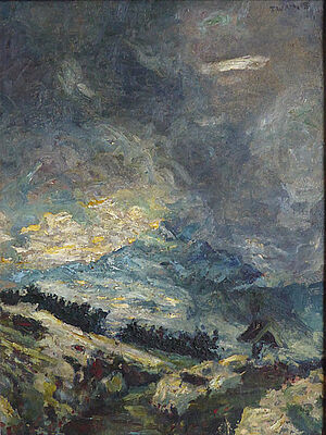 Expressives Ölgemälde: o.T. (Wanderer im Gebirge)