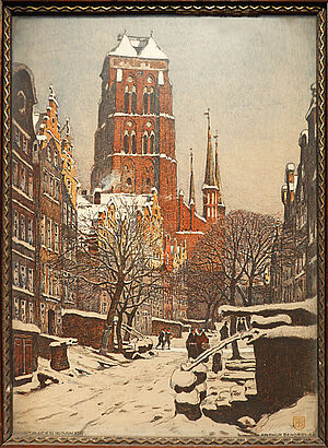 Farblithographie: "Sankt Marien in Danzig mit der Jopengasse" von 1906