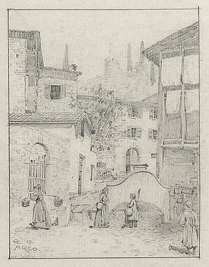 Bleistiftzeichnung: o.T. (Straßenansicht in Arco)