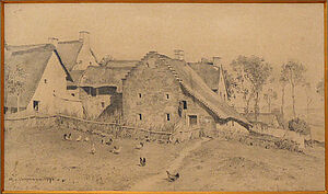 Bleistiftzeichnung: o.T. (Dörfliches Idyll mit Bauernhäusern)