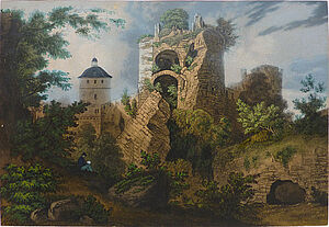 Romantisches Aquarell: ohne Titel (Ruinenlandschaft, evtl. Heidelberger Schloß)