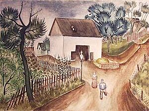 Aquarell des magischen Realismus: ohne Titel (Straßenansicht) von 1928