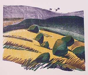 Farbholzschnitt: "Erntefelder" von 1985