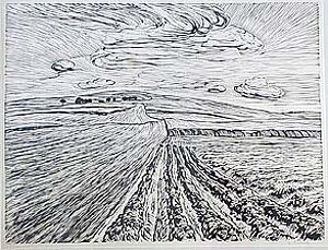 Holzschnitt: ohne Titel (Landschaft mit Acker)