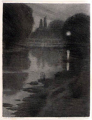 Impressionistische Radierung: Fluss am Abend