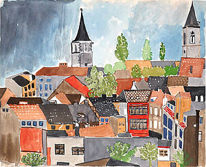 Aquarell (mischtechnik): ohne Titel (Ansicht von Erfurt)