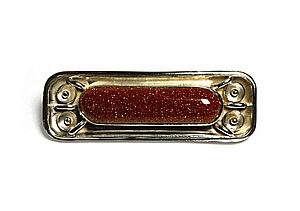 Silberne Brosche mit Goldfluss (Aventuringlas)
