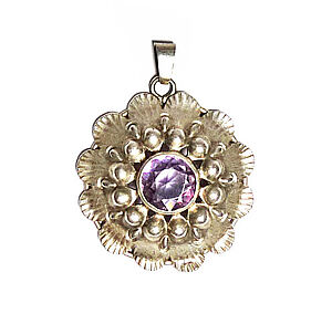 Silberner Anhänger mit Amethyst in Form einer Blüte