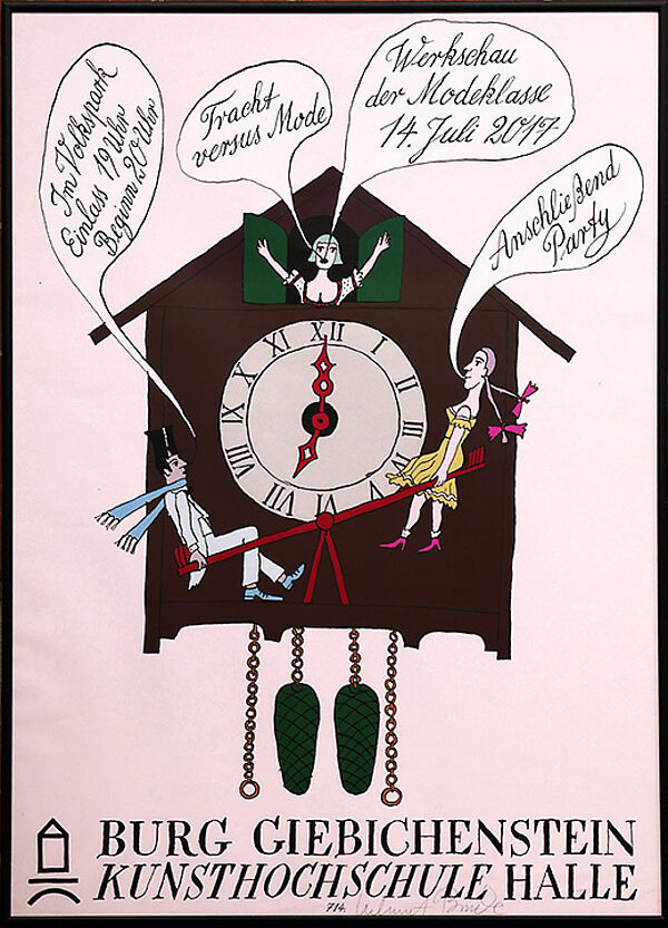 Plakat zur Werkschau der Modeklasse der Kunsthochschule Burg Giebichenstein in Halle am 14.7.2017