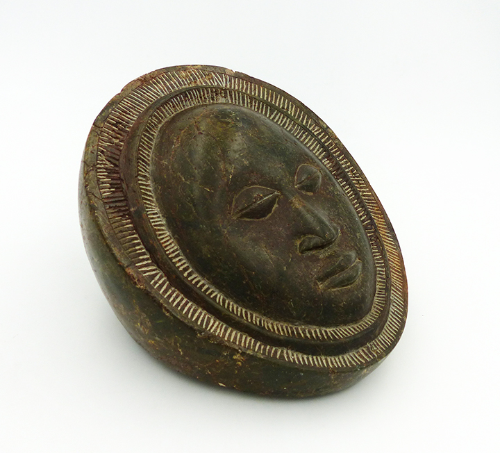 Plastik aus Speckstein: Gesichtsmaske mit Strahlenkranz,