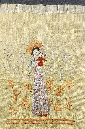 Kleines Tuch mit figürlicher Stickerei (Madonna mit Kind)
