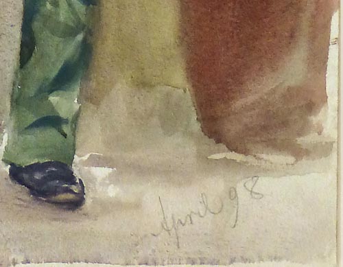 Aquarell auf Karton, aufgezogen auf Pappe, unsigniert (stammt aus einem Konvolut von Arbeiten von M. Freudenberg), datiert "April (18)98". Blattmaße ca. 50 x 32 cm
