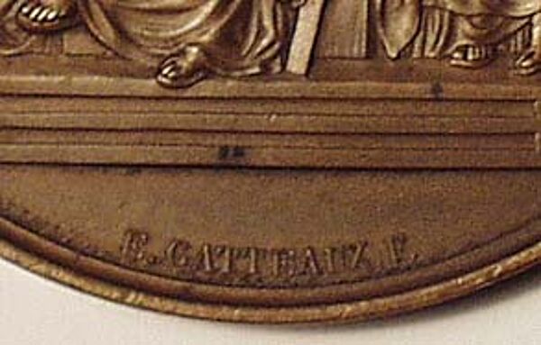 zu Edouard Gatteaux: bedeutender französischer Bildhauer und Medailleur, geb. 1788 in Paris, Schüler seines Vaters Nicolas Marie Gatteaux und des Bildhauers Moitte, ging 1809 mit dem Rompreis der Ecole des Beaux-Arts im Medaillenfach nach Rom, wurde nach seiner Rückkehr nach Paris 1814 von Ludwig den XVIII. zum königlichen Medailleur ernannt, stellte seit dem jährlch bis 1855 außer Medaillen auch Arbeiten in Marmor und Bronze im Salon aus (danach Rückzug von künstlerischer Tätigkeit), gest. 1881. Zahlreiche Arbeiten im öffentlichen Raum (u.a. Luxembourg-Garten, Versaille) und im Museumsbesitz (Louvre). Quelle: Künstler-Lexikon Thieme-Becker. Die o.g. Medaille ist hier ausdrücklich erwähnt.