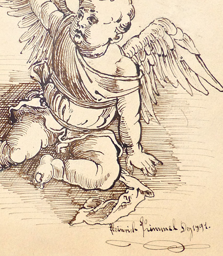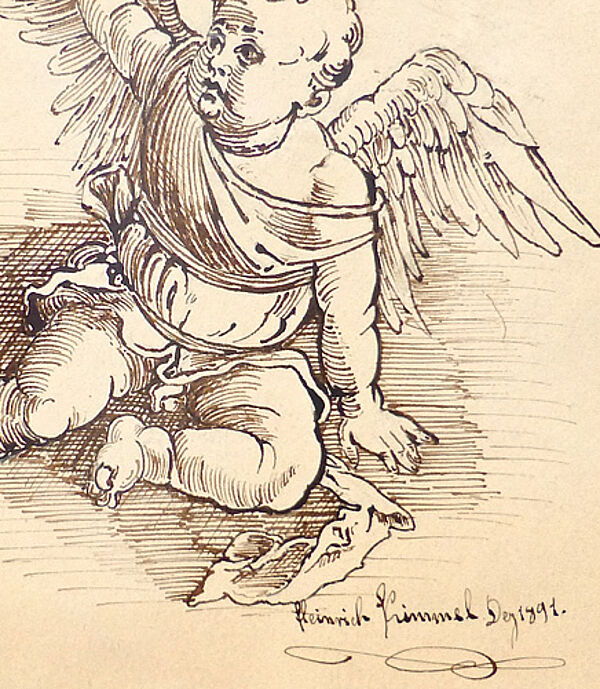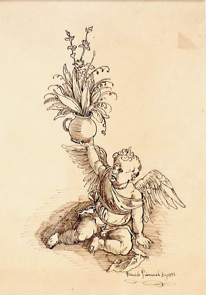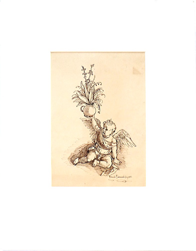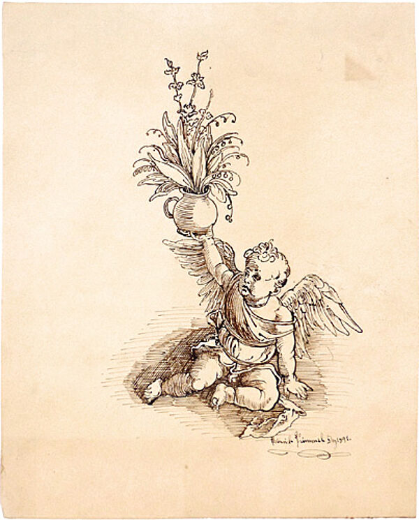Federzeichnung: ohne Titel (Blumentopf haltender Engel) von 1891