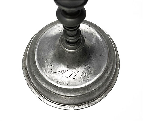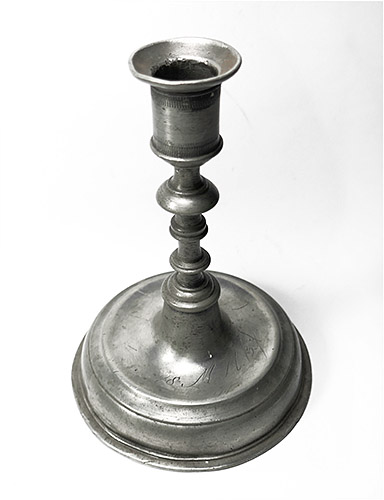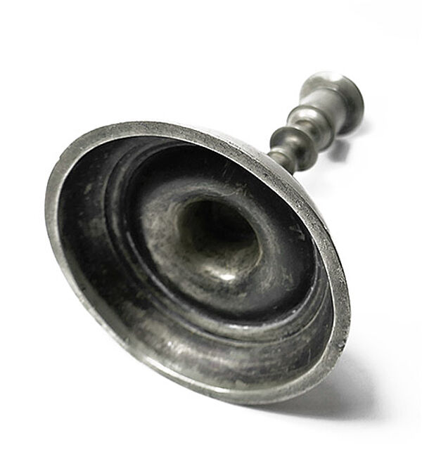 Kleiner Glockenfuß-Zinnleuchter, datiert 1833