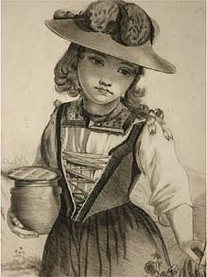 Bleistiftzeichnung: ohne Titel (Brustportrait einer Biedermeier-Dame)