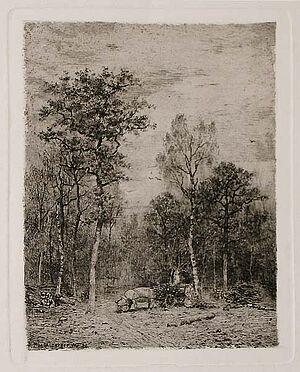 Radierung ohne Titel (Waldweg mit Holzarbeitern)