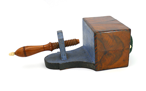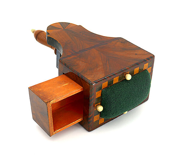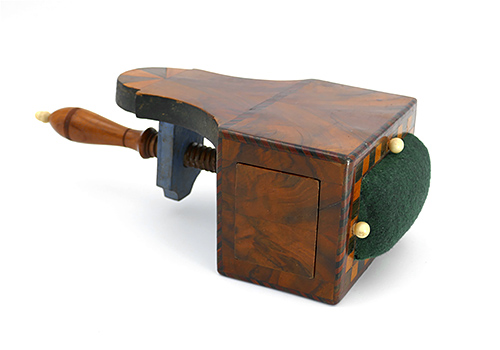 Nadelkissen mit Schraubzwinge und Geheimfach aus der Biedermeierzeit