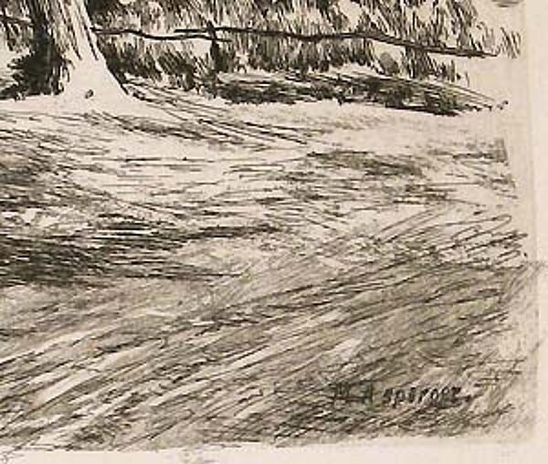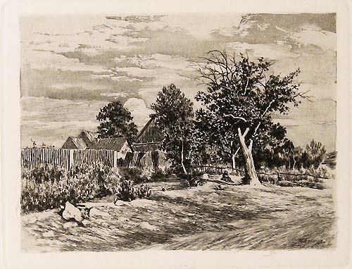 Blattmaße ca. 40 x 33,5 cm, Plattengröße ca. 25,5 x 19 cm, in der Platte signiert. Rückseitig von fremder Hand bezeichnet. Geringe Lagerspuren. Wohl um 1890.