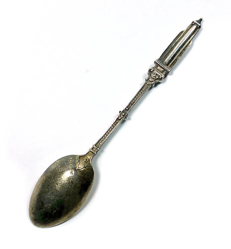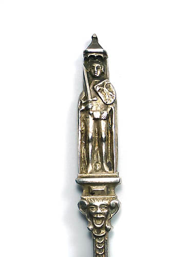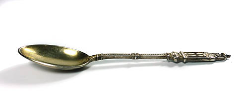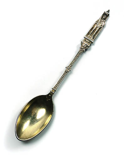 Silberner Mokkalöffel mit figürlichem Stiel (Roland-Figur aus Bremen)