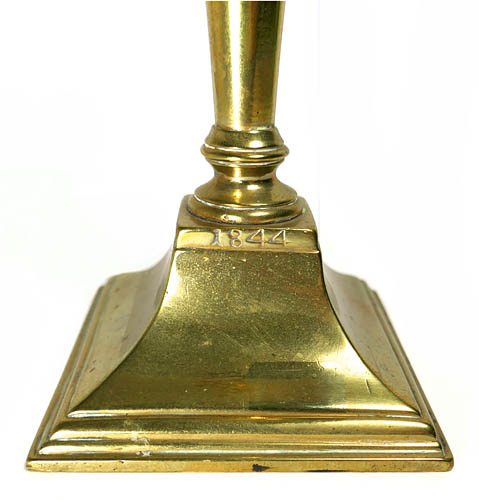 Gefusster Messingkorpus, oberhalb des Standes eingeschlagene Jahreszahl "1844". Höhe ca. 18 cm, geringe Alters-, Genrauchs- und alte Putzspuren. Wohl Skandinavien, vermutlich Dänemark.