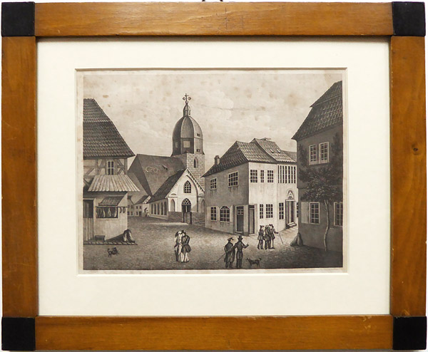 Stahlstich auf Papier, unterhalb der Darstellung signiert. Hinter neuzeitlichem Passepartout und im antiken Holzrahmen (vermutlich aus der Biedermeier-Zeit). Bildmaße ca. 18,5 x 13,5 cm, Rahmenaußenmaße ca. 29,5 x 24,2 cm, das Bild wurde nicht geöffnet, soweit beurteilbar ist es leicht fleckig, vermutlich wurde das Blatt außerhalb der Darstellung etwas beschnitten.